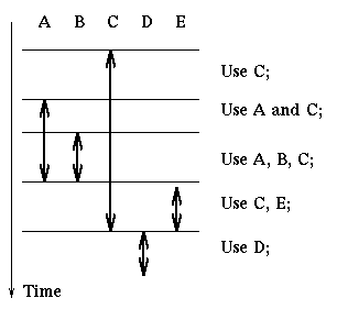 uses resources ordered as A, B, C, D, E in the following manner: